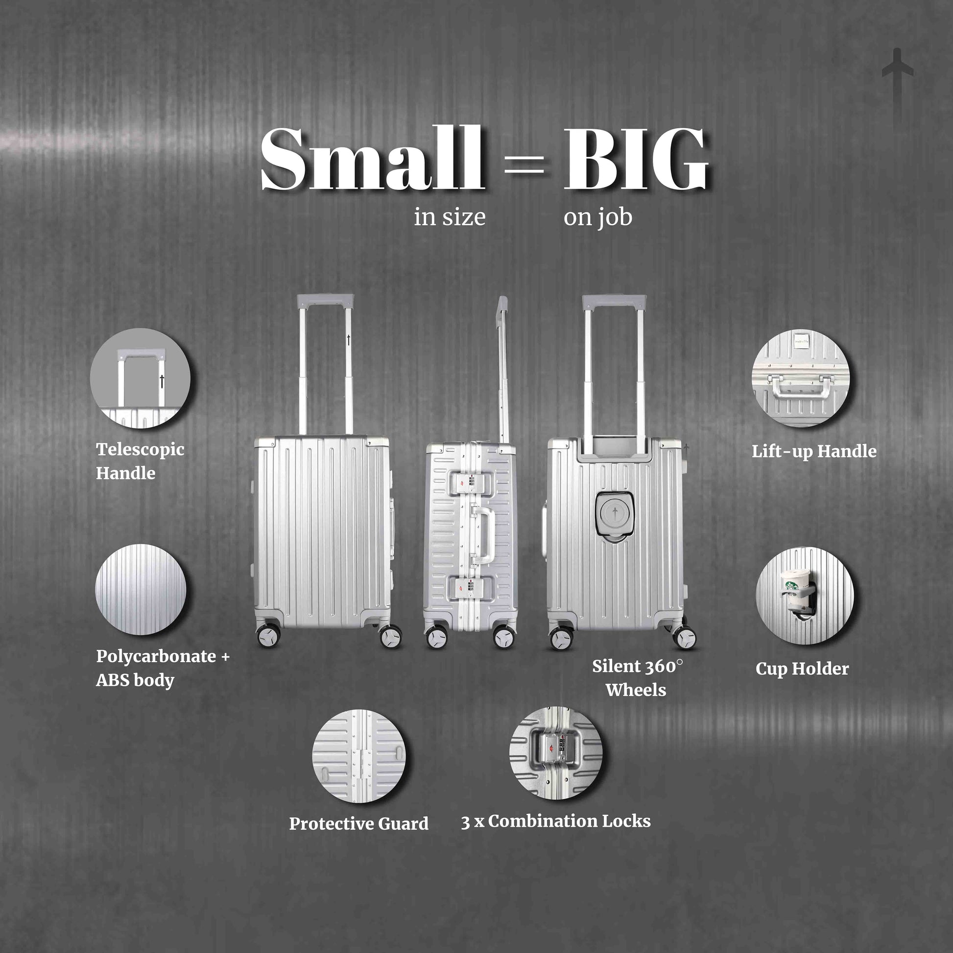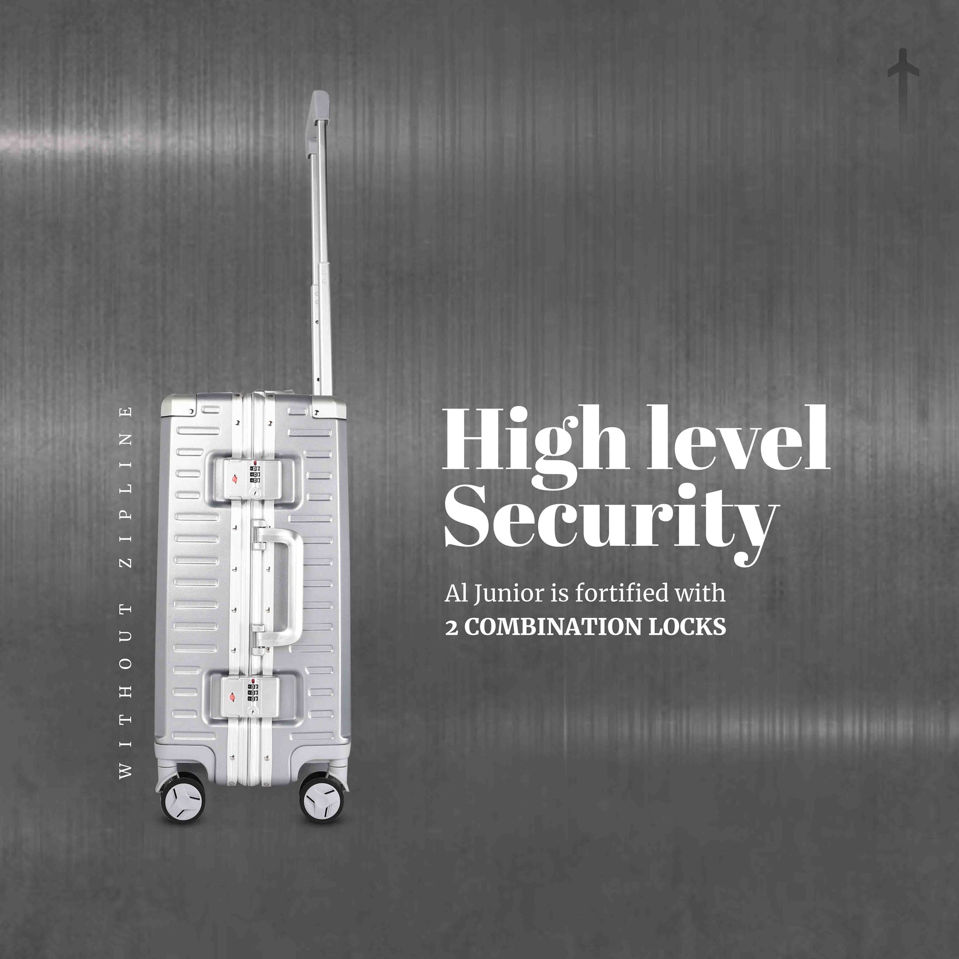 Fashioned from high-performance Polycarbonate and ABS blend, AL Junior brings that same signature silvery magic in a compact form-complete with bold vertical ridges for a standout, premium aesthetic. Reinforced edges blend seamlessly into the design-quietly adding strength and an added layer of security